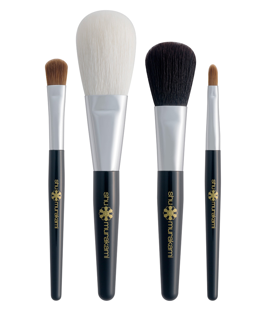 High quality travel set of 4 basic makeup brushes for face, cheeks, eyes, lips placed in a leather case by luxury company shu uemura. Portable natural brush set is a high quality travel set of 4 basic makeup brushes for face, cheeks, eyes, lips housed in a leather case by luxury. I love shu uemura brushes and i love that they made a.